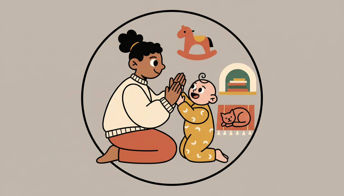 Play patty-cake or other hand-clapping games with your child. Guide their hands gently through the motions while singing or chanting. Keep the rhythm simple and consistent. This traditional game teaches timing and coordination with another person. Your child learns to match their actions to yours through repeated practice.