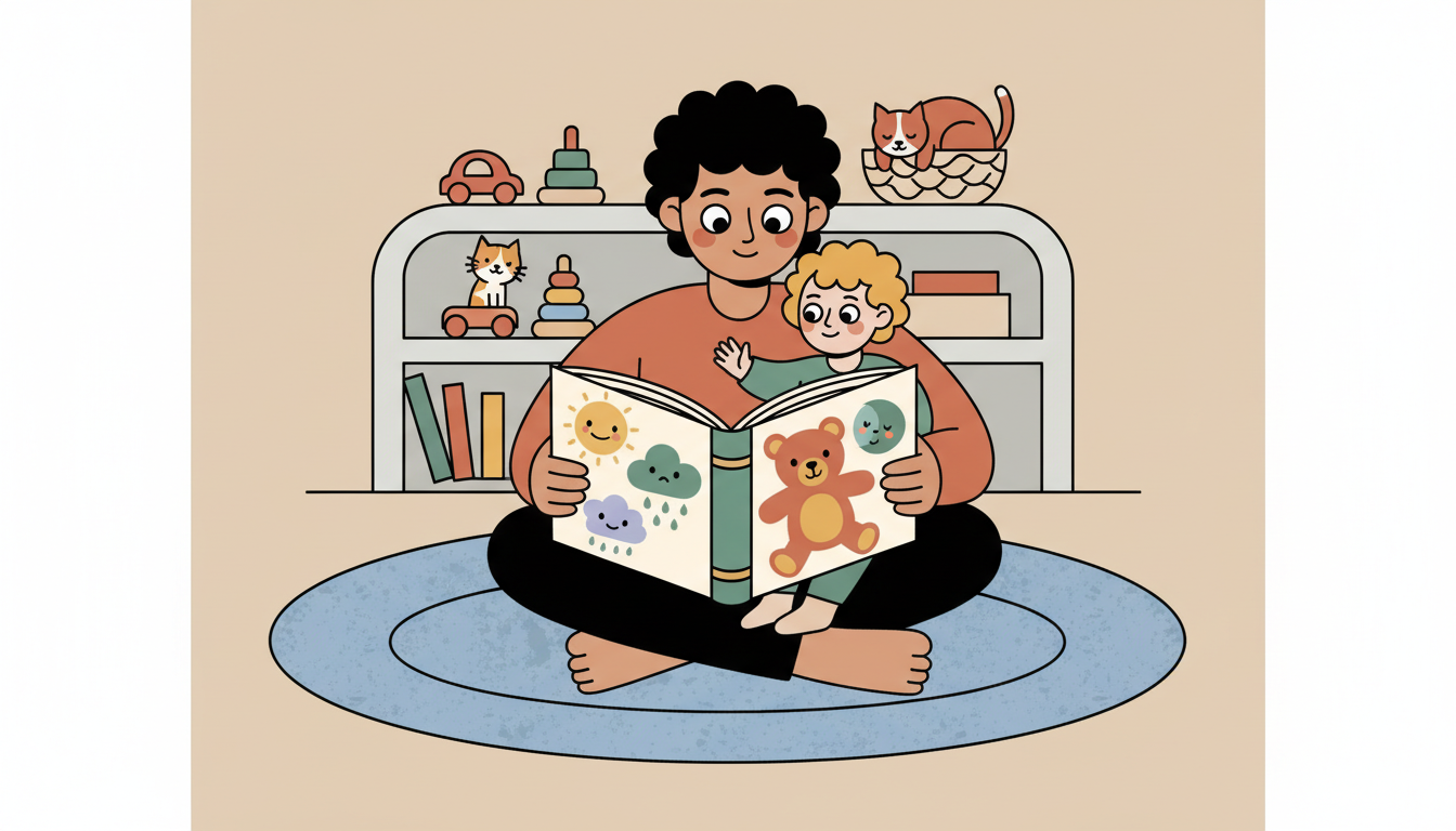 During story time, pause to point out characters' emotions. Ask simple questions like 'Is teddy happy or sad?' Help your child notice facial expressions in the pictures. Name the emotions you see together. This turns reading time into an empathy learning moment.