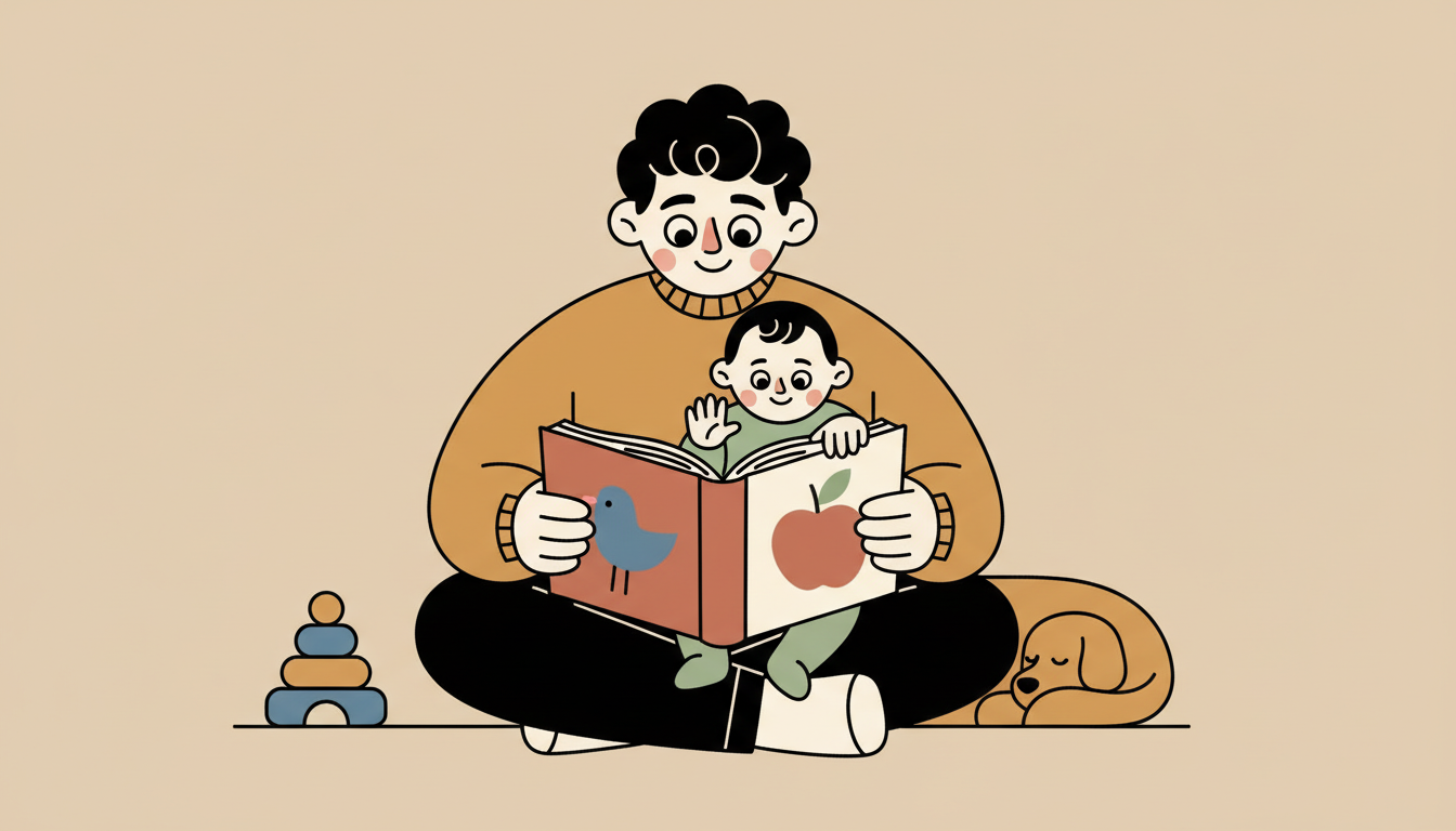 Look at a simple board book together and point to pictures while naming them. Wait for your child to touch or pat the pictures too. Take turns pointing to different things on each page. This creates a cooperative reading experience where both of you participate. Your child learns that books are for sharing and that looking at them together is more fun than alone.