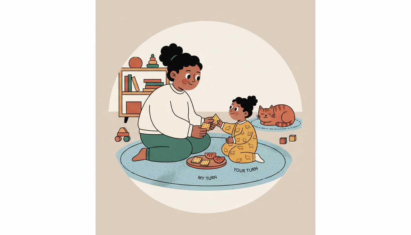 Turn-taking with food teaches the foundation of reciprocity in relationships. Sharing something valuable like snacks helps your child practice cooperation in a concrete way they can understand.