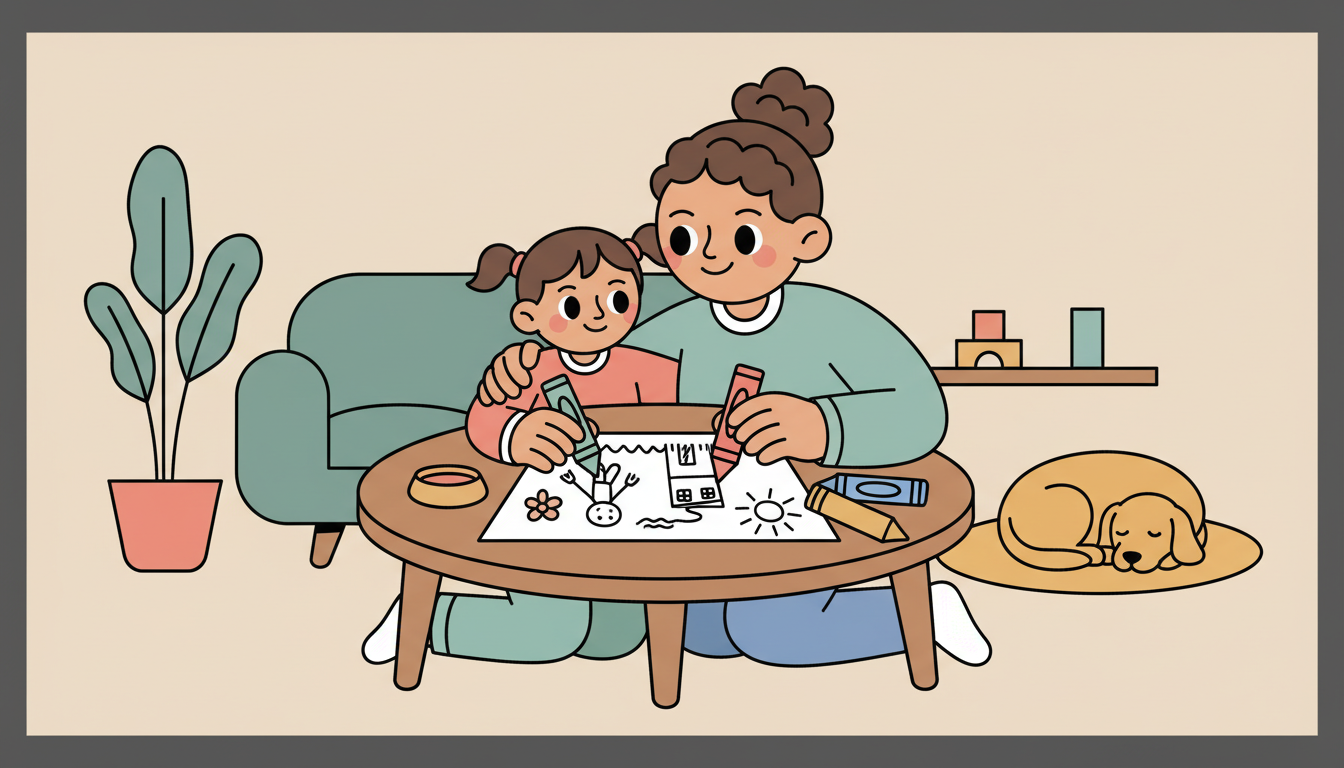 Childhood behaviors including demonstrating appreciation through actions predict stronger parent-child bonds (Froh & Bono, 2014). At this age, children are developing fine motor skills and can hold crayons with their fingers. Combining creative expression with gratitude practice makes appreciation tangible and memorable. This activity respects their developmental stage while building appreciation habits.