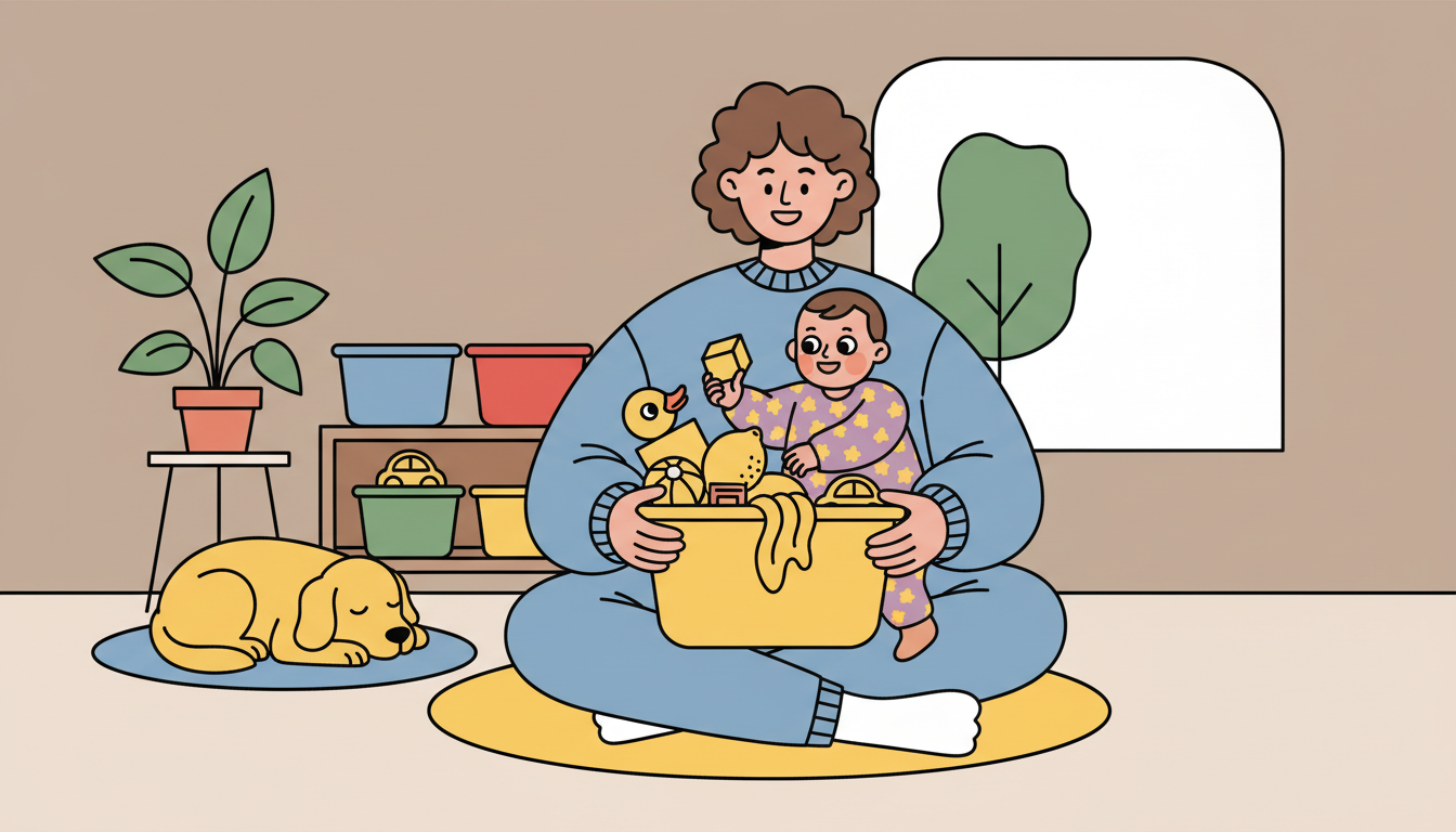 Choose items that are safe to handle and mouth, as exploring with mouths is still common. Keep the collection small, around five to seven items, to prevent overwhelm. Let them dump everything out and put it back in - this repetition builds understanding.