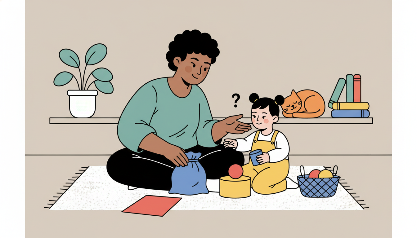 Gather objects of two or three different colors and play a matching game. Place colored paper or containers in front of your child and ask them to find things that match each color. When they pick the wrong color, don't immediately correct them. Instead, ask, 'Does that match?' and let them look again. This gentle prompting helps them learn to self-correct and persist when something doesn't work the first time. The simple challenge matches their ability to categorize by one attribute while building tolerance for making mistakes.