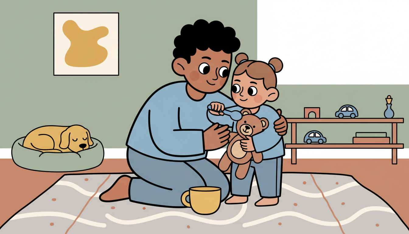 Give your child a stuffed animal or doll and a toy spoon or cup. Encourage them to pretend to feed the toy. This simple pretend play develops symbolic thinking as children use one object to represent another. It also builds imagination.