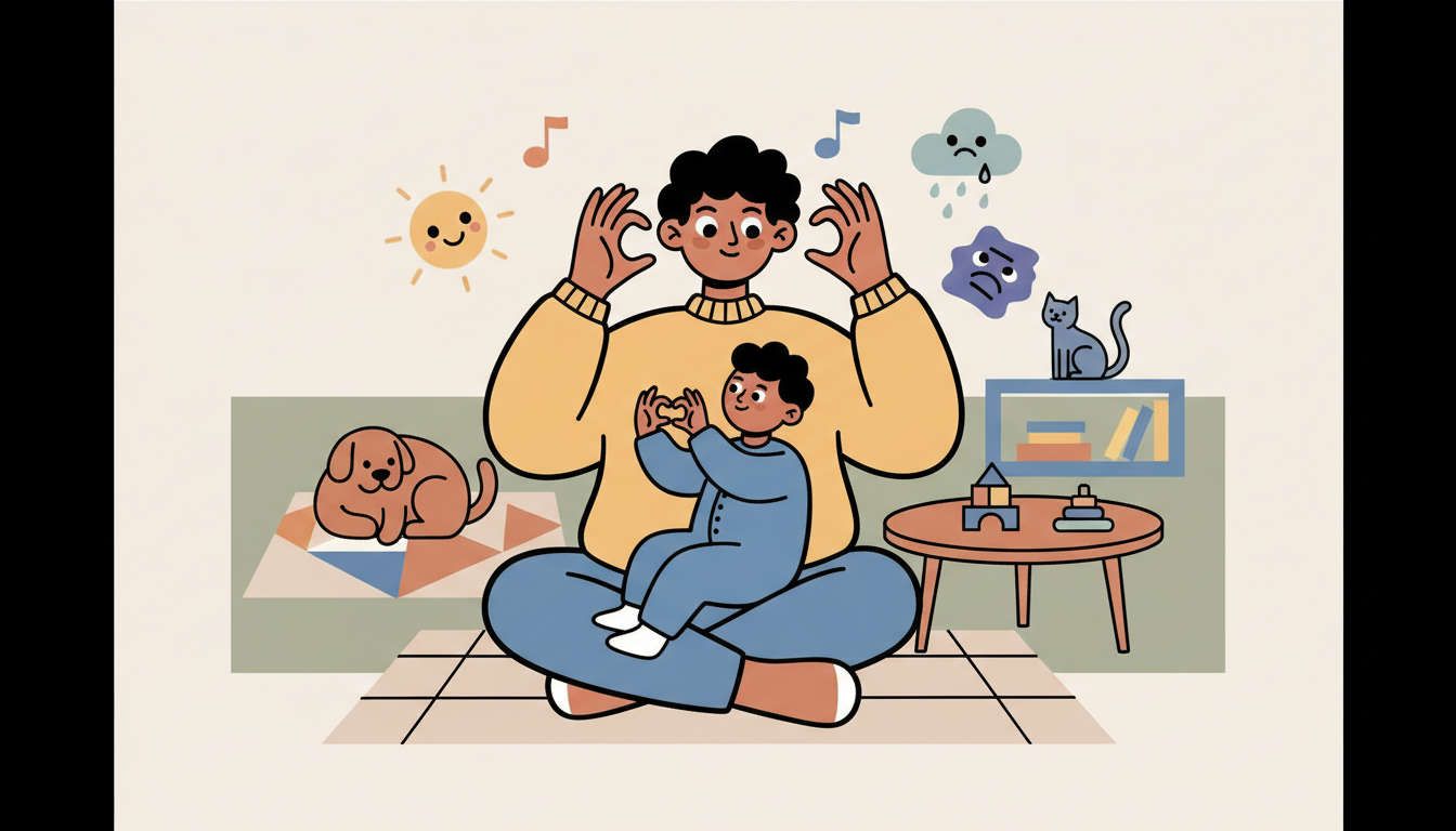 Sing simple songs about emotions together. Try songs like 'If You're Happy and You Know It' with different feelings. Add hand motions or facial expressions that match each emotion.