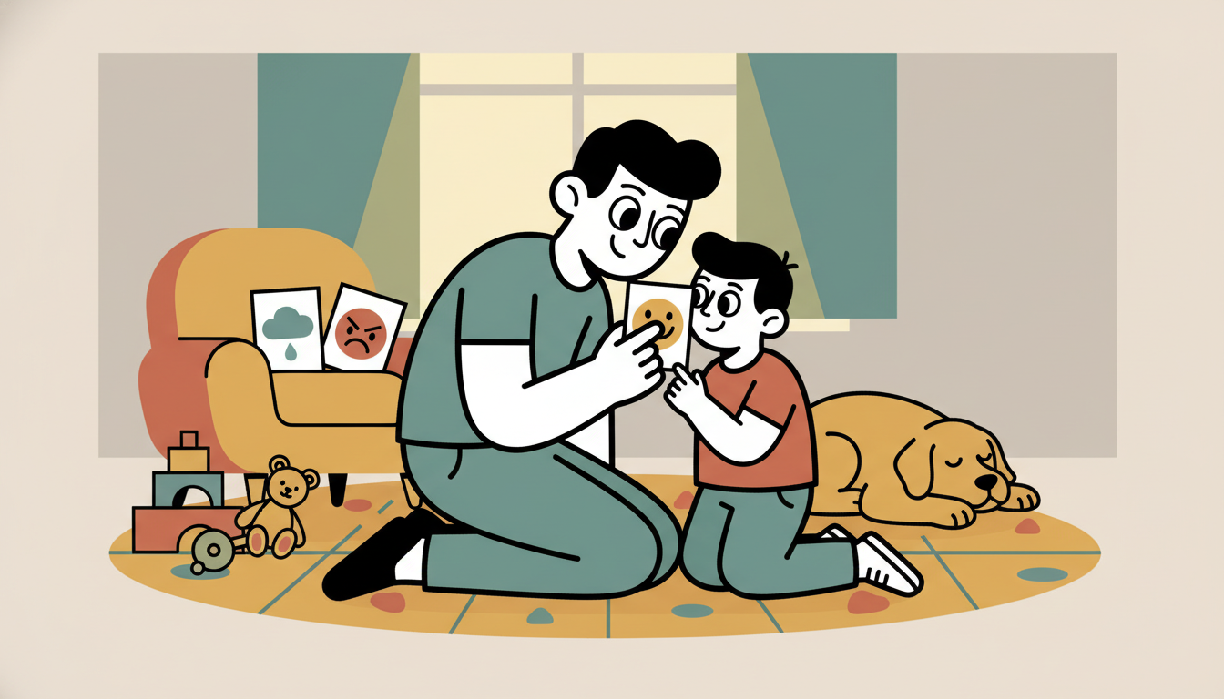 Hide simple feeling cards or drawings around your play area. Go on a treasure hunt together to find them. When your child finds one, talk about that emotion. Ask when they last felt that way or what makes them feel like that. You share your experiences too. This makes emotion exploration active and engaging.
