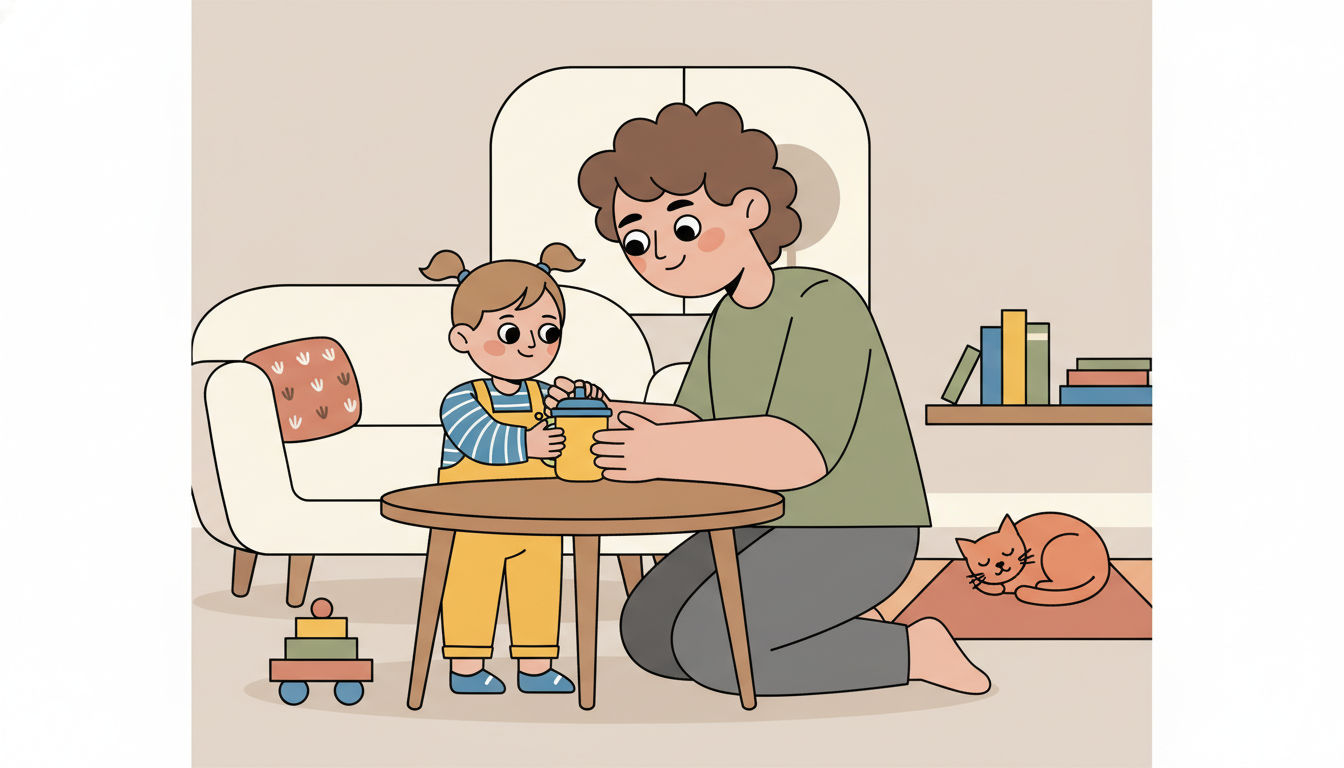 When your child helps in small ways, acknowledge it warmly. Say, "You put the cup on the table" or "You handed me the book." Keep your tone genuine and calm. This isn't about elaborate praise, just simple recognition. Your child learns that they contribute positively, which builds confidence and a sense that they make good things happen.