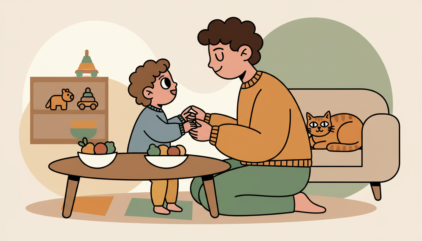 Keep it very brief. Toddlers cannot sit still for long gratitude practices. Use the same simple words each time. Consistency helps learning at this developmental stage. Make it warm, not formal. A gentle routine feels natural rather than forced.