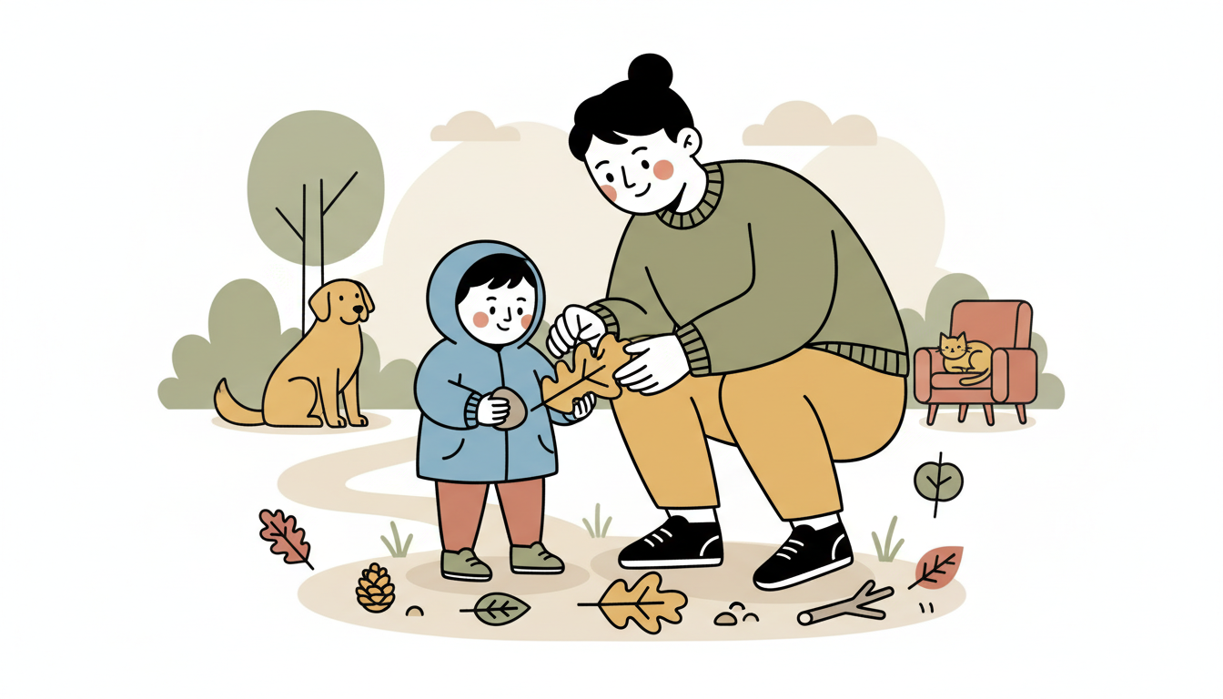 Bring a small bag or container for collecting treasures. Keep walks short, around 10 to 15 minutes, to match your child's stamina. Let your child lead and explore at their own pace, even if it means not getting far.