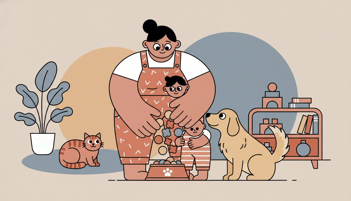 If you have a pet, let your child help with simple care tasks like putting food in the bowl or dropping a toy near the pet. Supervise closely and guide their hands as needed. Use simple words like food or dog. This caring activity gives your child a sense of responsibility and shows them they can help another living being.
