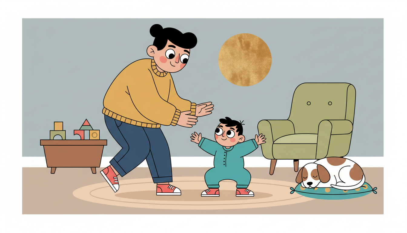 Play a simple stopping and starting game together. Say 'green light' for your child to move or play, then 'red light' to stop and freeze. Start with just a few rounds and keep the red light waits very brief, around 10 to 30 seconds. Make it fun by freezing in silly positions together.