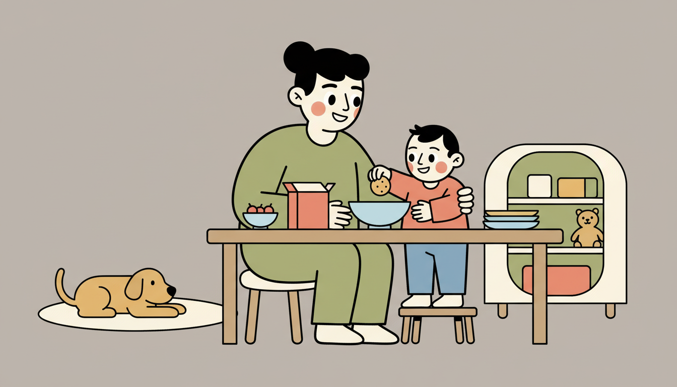 During snack preparation, let your child help by placing crackers on a plate or dropping berries into a bowl. Supervise closely and hand them items one at a time. Use simple words like cracker and bowl. This real food preparation task helps your child feel capable and important. Their contribution becomes part of the family snack.