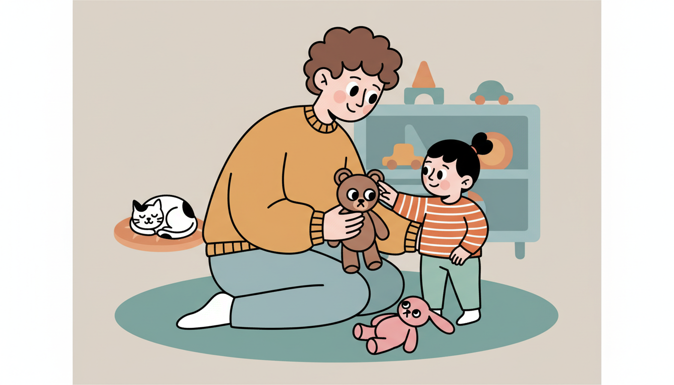 Use stuffed animals or dolls to act out simple emotional scenarios. You might say, 'Teddy fell down. How does Teddy feel?' Let your child respond, then help Teddy feel better together. This play-based approach lets your child practice empathy and problem-solving in a safe, pretend context. It's easier to talk about a toy's feelings than their own big emotions.