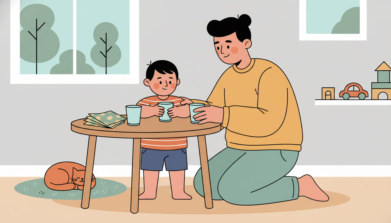 Give your child the job of putting specific items on the table before meals. Start with unbreakable items like napkins or plastic cups. Show them where each item goes and let them place them independently. Over several days, they will remember the pattern and feel proud of preparing the family for mealtime. This creates a sense of meaningful participation.