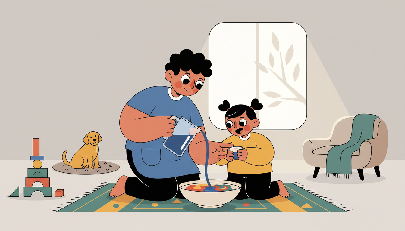 3–4 yearsSuccess MindsetMaterials: Household items like water, blocks, or safe mixing materials like food coloring