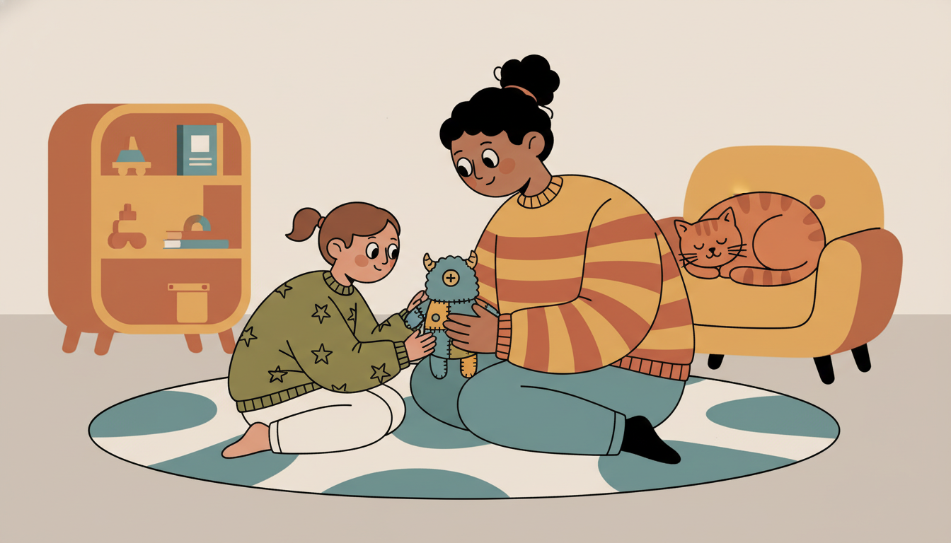 Help your child create or choose a special comfort item they can use when feeling upset or worried. This might be a small stuffed animal, a soft blanket, or a photo of you together. Talk with your child about how this item can help them feel safe when you are not right there. Practice using it together during calm moments so it becomes familiar.