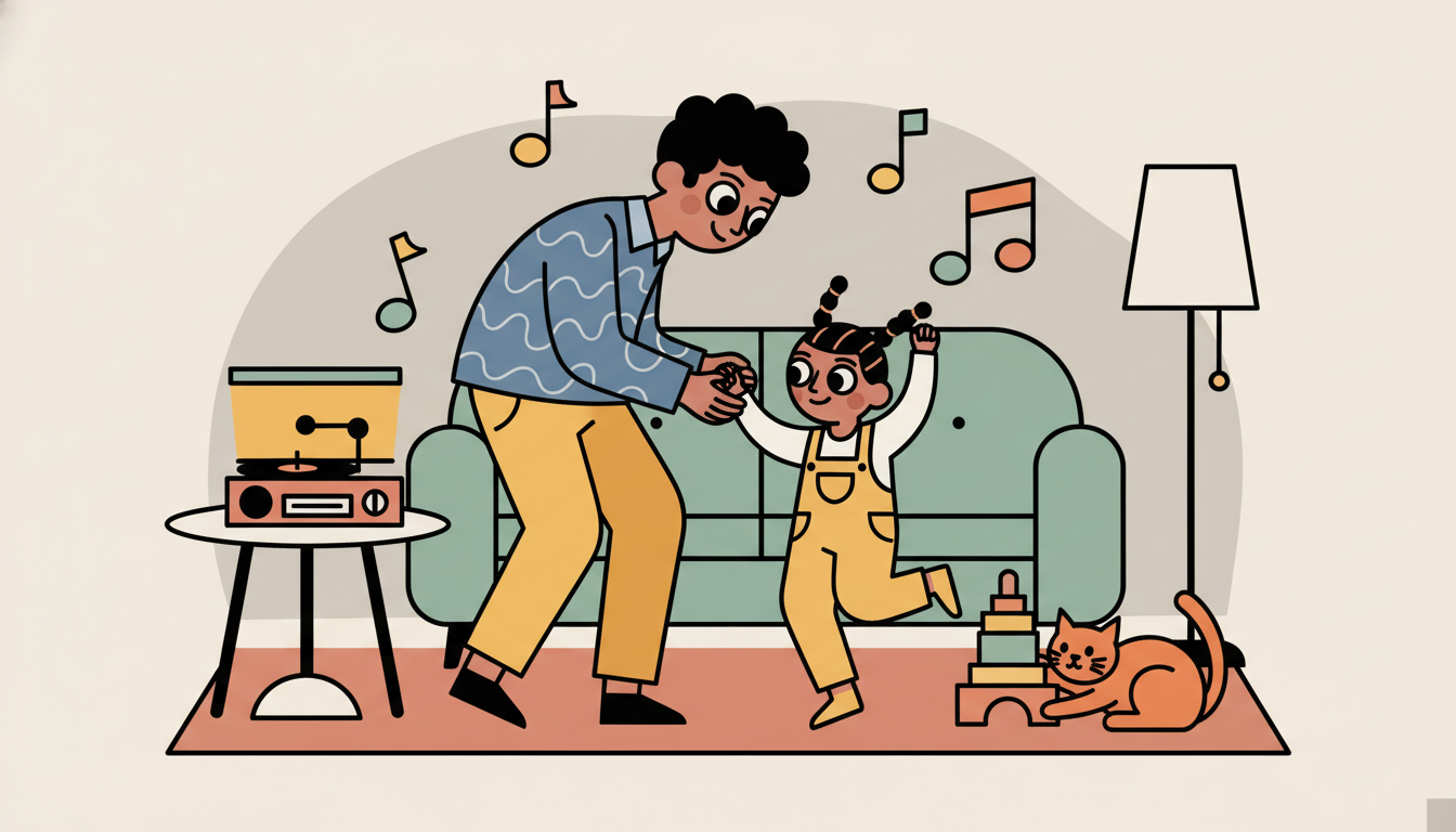 Put on music and dance together for 10 to 15 minutes. Try different movements like jumping, spinning, marching, and freezing when the music stops. Let your child lead sometimes by choosing moves for you to copy. This activity combines cardio exercise with rhythm, creativity, and turn-taking. Make it part of your daily routine before or after meals.