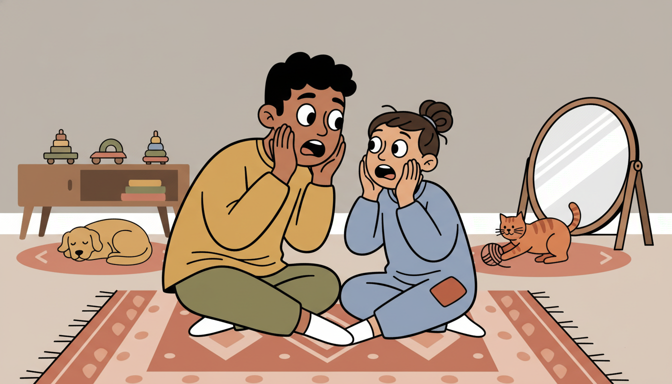 Take turns making different feeling faces and guessing what emotion the other person is showing. Start with basic emotions like happy, sad, angry, and scared, then add more complex ones like surprised, frustrated, or proud. Talk about times you each felt that way. You can also use a mirror to explore facial expressions together. This makes emotion recognition fun and interactive.
