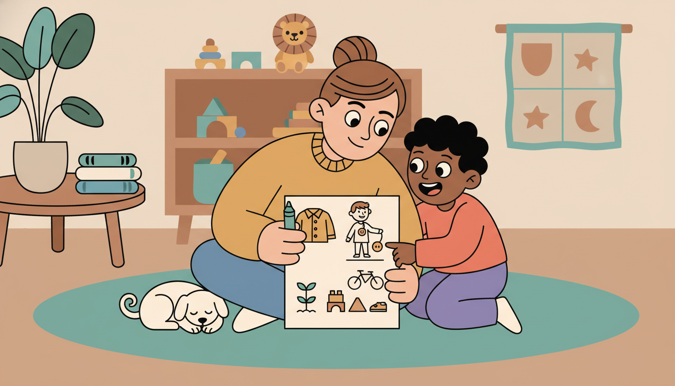 Tell stories about times when your child couldn't do something before but can now. 'Remember when you couldn't button your shirt. Now you can do it by yourself.' Ask them to think of other things they've learned. Create a simple list or drawing together of skills they've grown into. This helps children see themselves as capable of growth and learning through challenge and practice.