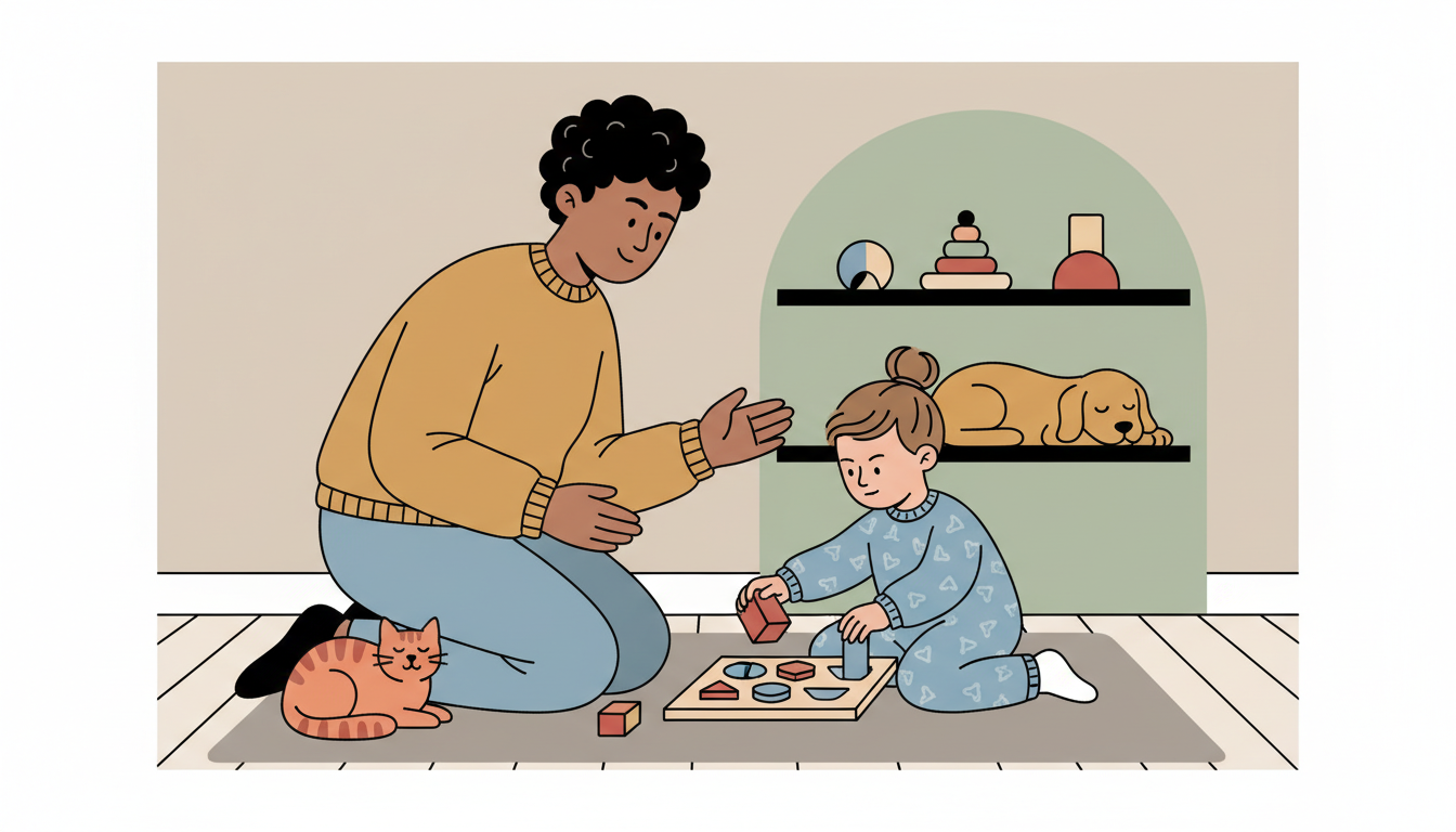 When starting a new activity or facing a small challenge during play, wait before jumping in to help. Let your child try first. If they're trying to open a container, fit puzzle pieces together, or build something, give them time to work through it. Watch for signs of frustration, but allow some struggle. When they do ask for help, offer the minimum assistance needed rather than taking over completely.