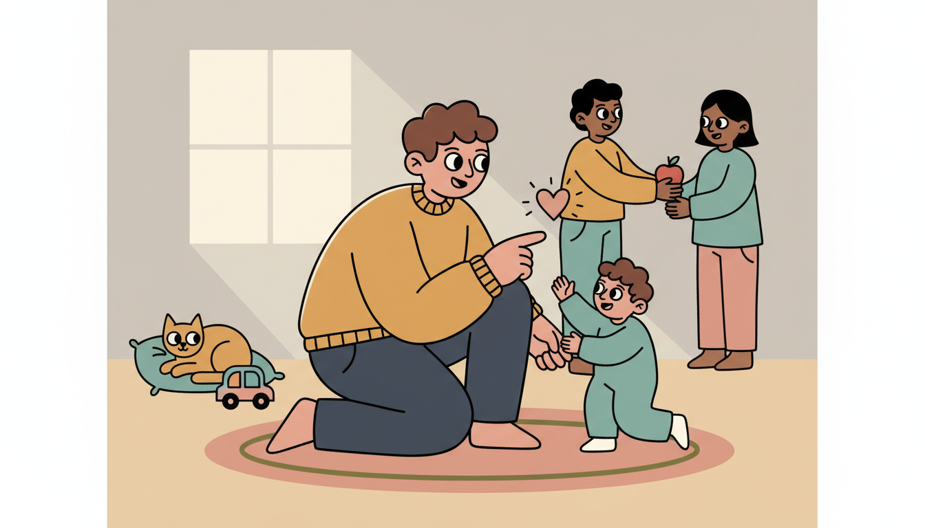 Play kindness detective together during daily activities. Notice and point out when you see kind actions, whether from family members, friends, or strangers. Say 'I spotted kindness' and describe what you saw. Encourage your child to spot kindness too. Celebrate each observation together. This builds awareness of positive actions happening around them and creates opportunities to express thanks.