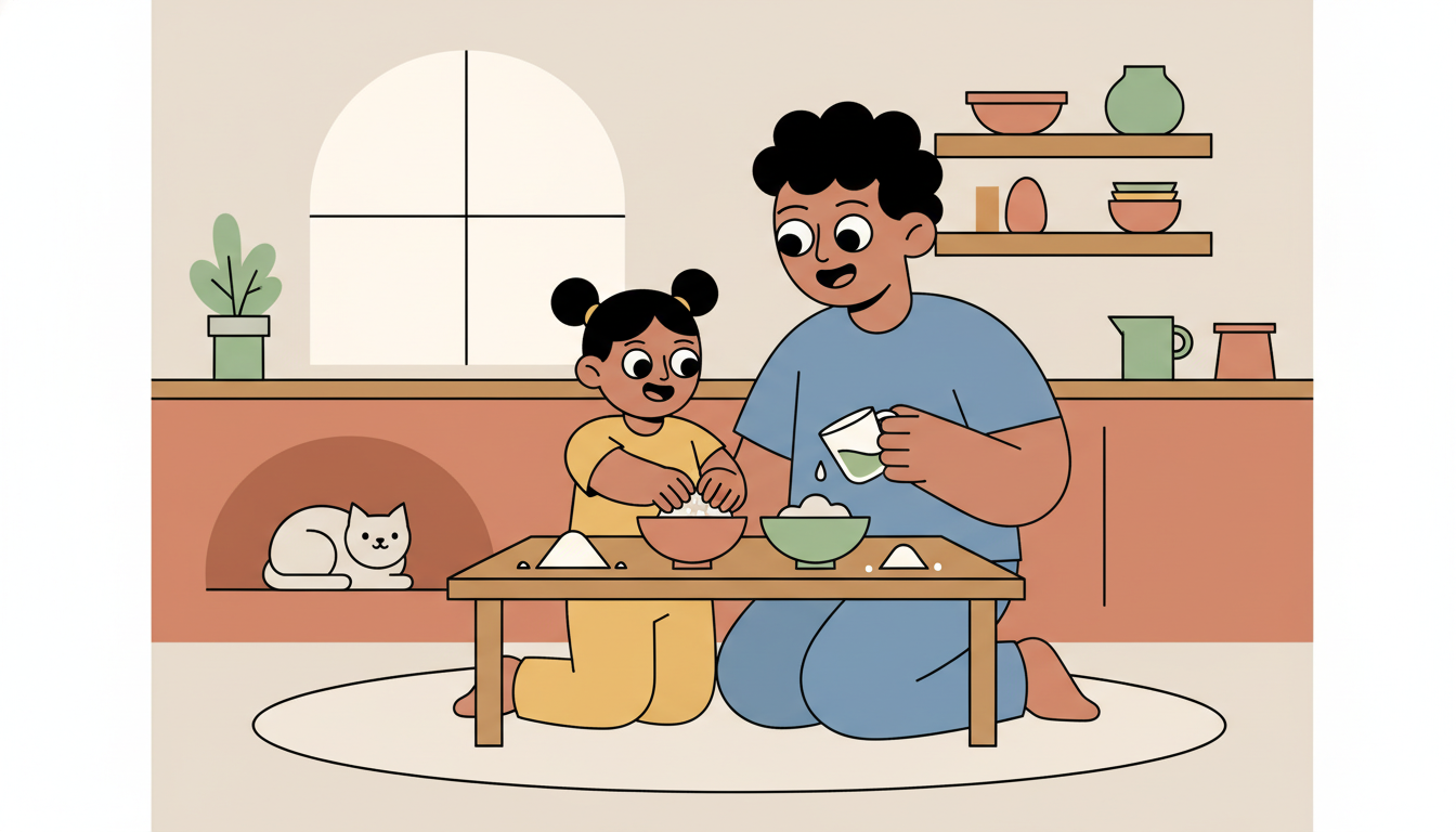 Choose three safe kitchen ingredients (like flour, sugar, and salt) and let your child explore their properties. They can touch, smell, and describe each one. Then mix each with a little water to see what happens. Does it dissolve, clump, or change? This turns your kitchen into a science lab with everyday materials.