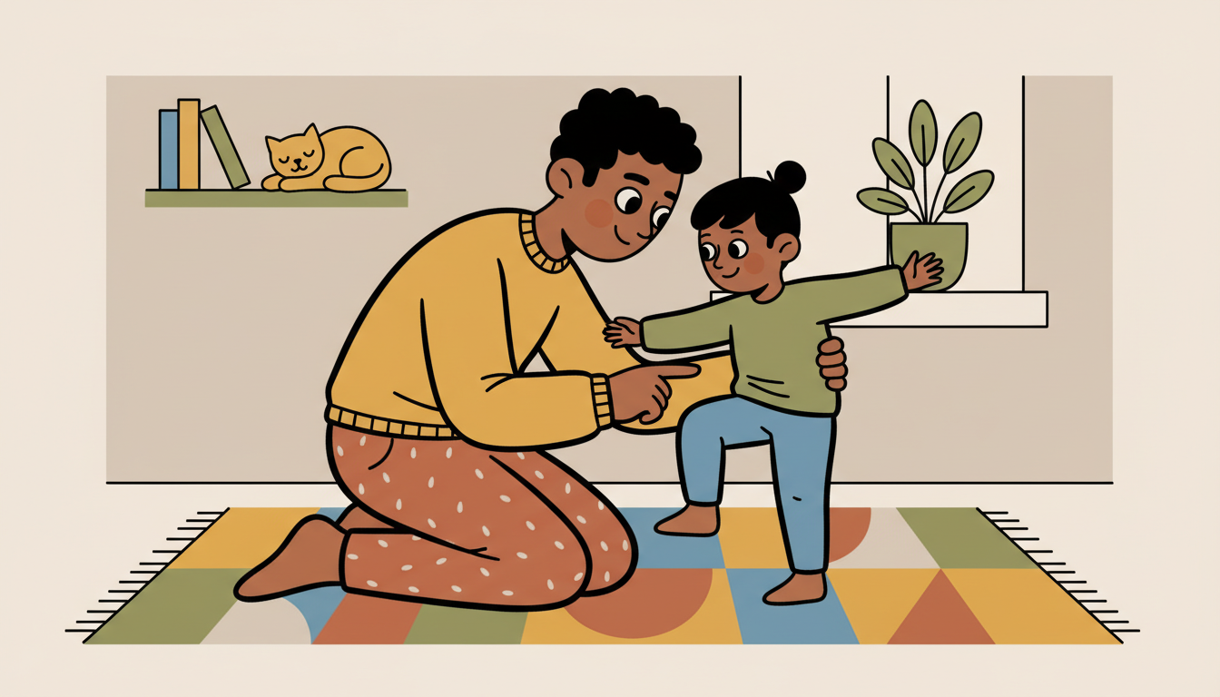 Pick a new skill to learn together, like skipping or hopping on one foot. Practice for a few minutes each day. Expect that it will be hard at first. Talk about how practice helps us get better and how everyone struggles when learning something new. Share your own learning challenges. This shows that struggling is normal and that improvement comes with time and effort, not instant success.