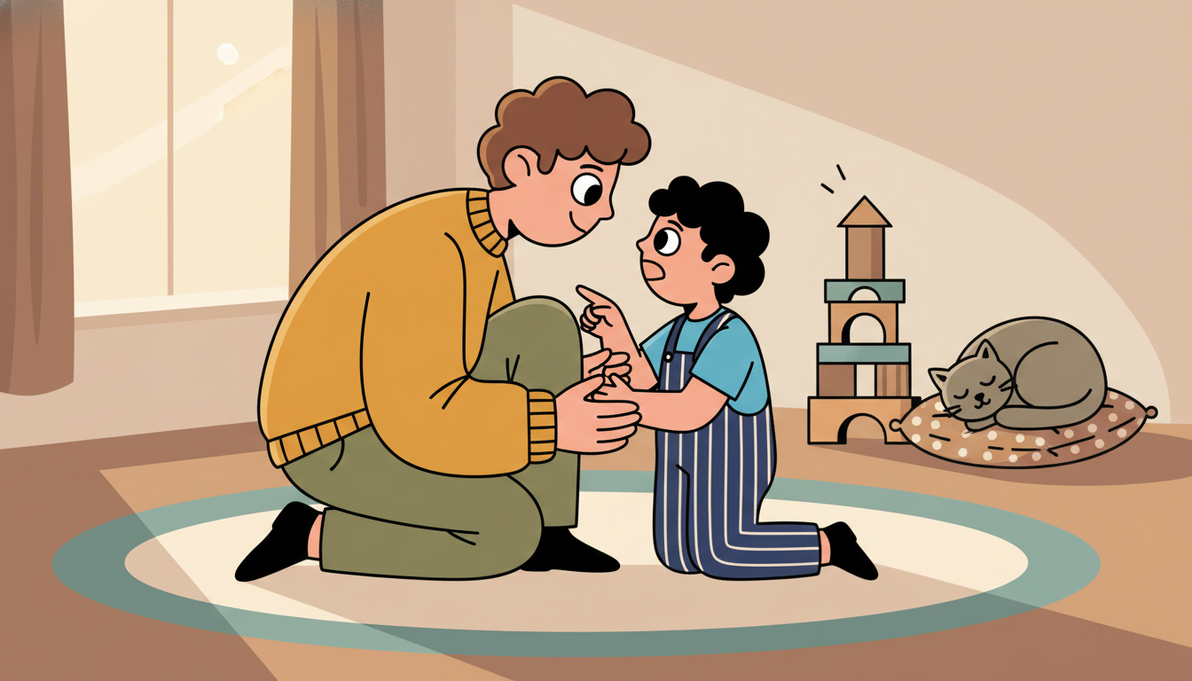 During your activity, when your child talks about something that matters to them, practice just listening without immediately solving or redirecting. Get down to their eye level, make eye contact, and reflect back what you hear. Say things like "It sounds like you really wanted to use the big blocks" or "You seem excited about that." This shows that their thoughts and feelings are worthy of your full attention.
