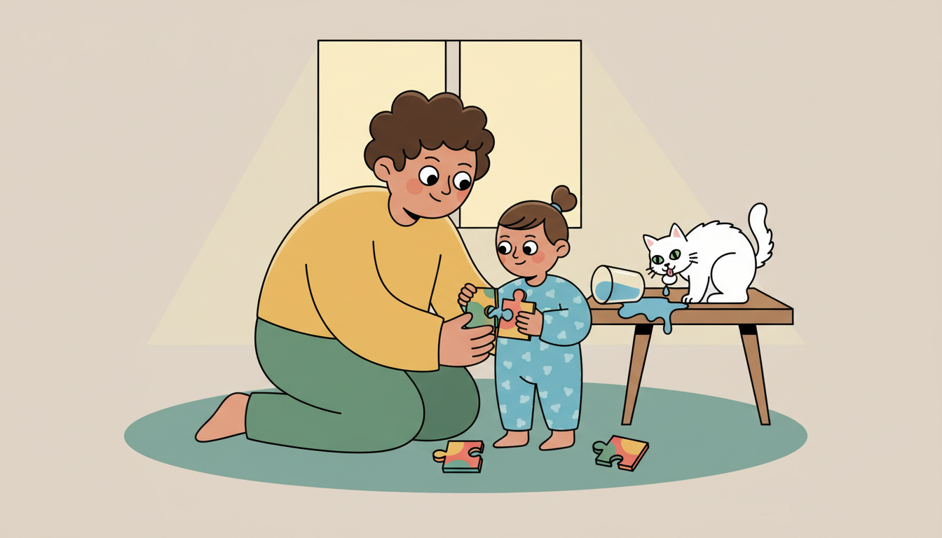 When something goes wrong during play, turn it into a learning moment. If your child spills water, breaks a toy, or makes a mess, pause and say what happened out loud together. Then work as a team to fix it. This teaches that mistakes happen and we take responsibility by making them right.