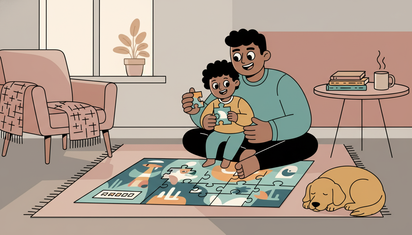 Choose a puzzle that's slightly challenging for your child. Work on it together across several sessions, noticing how it gets easier with practice. Talk about how their brain is getting stronger at figuring out where pieces go, just like muscles get stronger with exercise.