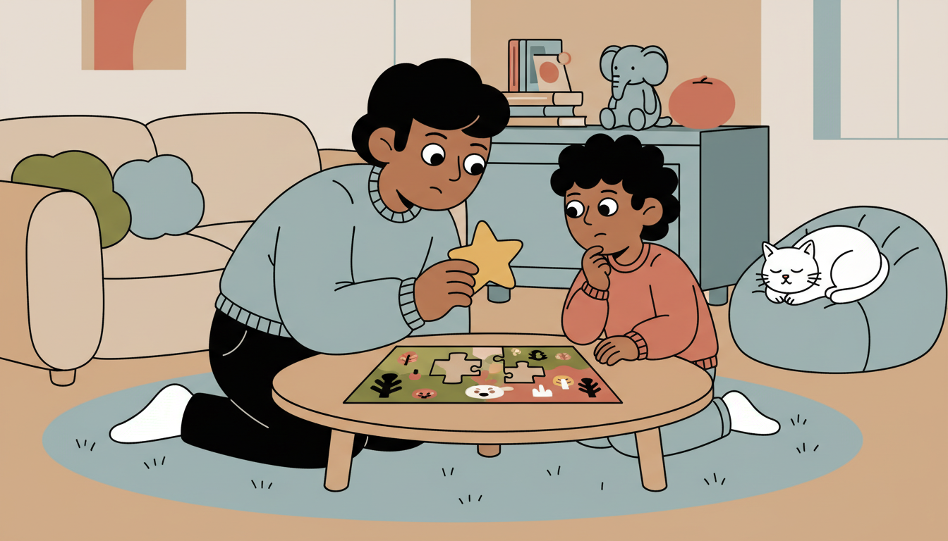 Work on a puzzle together but add a self-control challenge. Before placing each piece, your child must look at it carefully and think about where it goes without touching the puzzle. Only after they have thought about it can they place the piece. This builds the pause between impulse and action that is central to self-control.