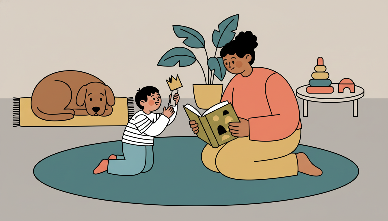 Sharing stories creates a special tradition that builds connection through repeated positive experiences. Families engaging in regular shared activities show 30% better communication quality and emotional connection, with joint activities providing opportunities for positive interaction and memory building (Orthner & Mancini, 1991). Stories and narratives enhance memory and language while creating shared reference points for your relationship. At this age, children understand simple narratives and can engage in pretend play, making story acting developmentally appropriate and engaging.