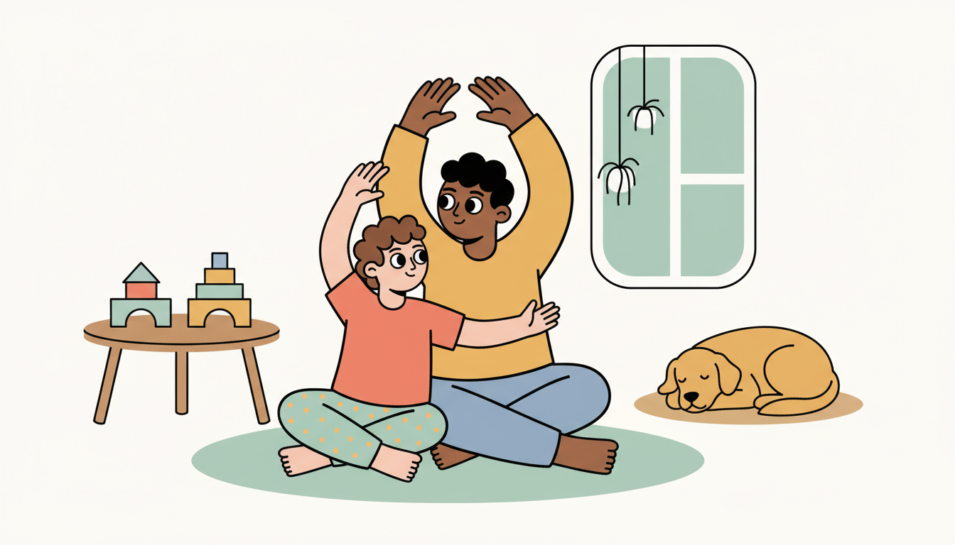 Teach your child simple songs with hand motions like 'Itsy Bitsy Spider' or 'Twinkle Twinkle.' Sing together while doing the motions at the same time. Take turns starting the song. This shared activity builds connection and teaches children to coordinate actions with others.