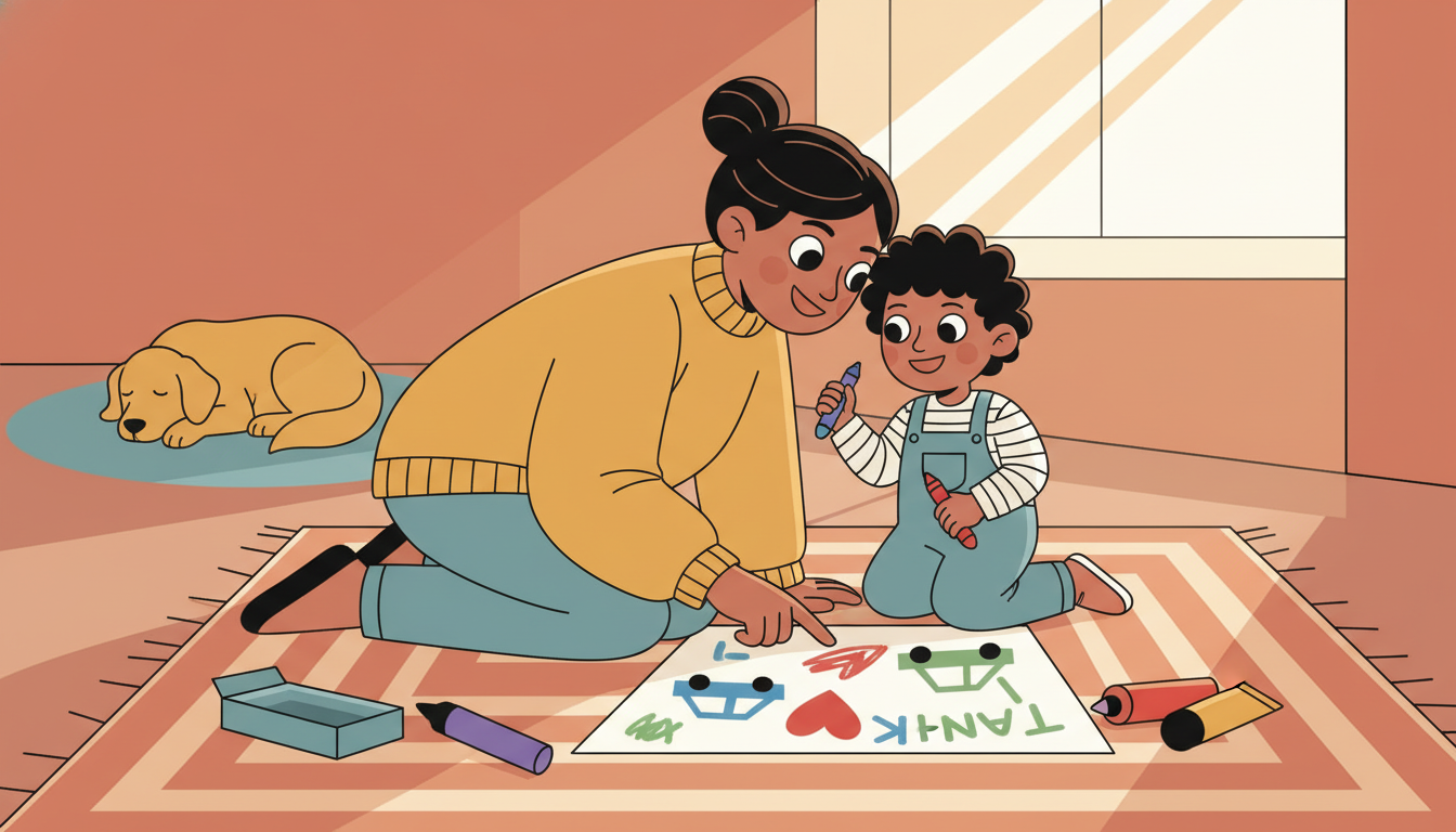 Set aside time for your child to draw a picture for someone they want to thank. This could be a family member, friend, or helper in their life. As they draw, talk about what that person did and why it made them feel good. Let them choose their own colors and decide what to include in the drawing. When finished, help them give or send the drawing to that person.