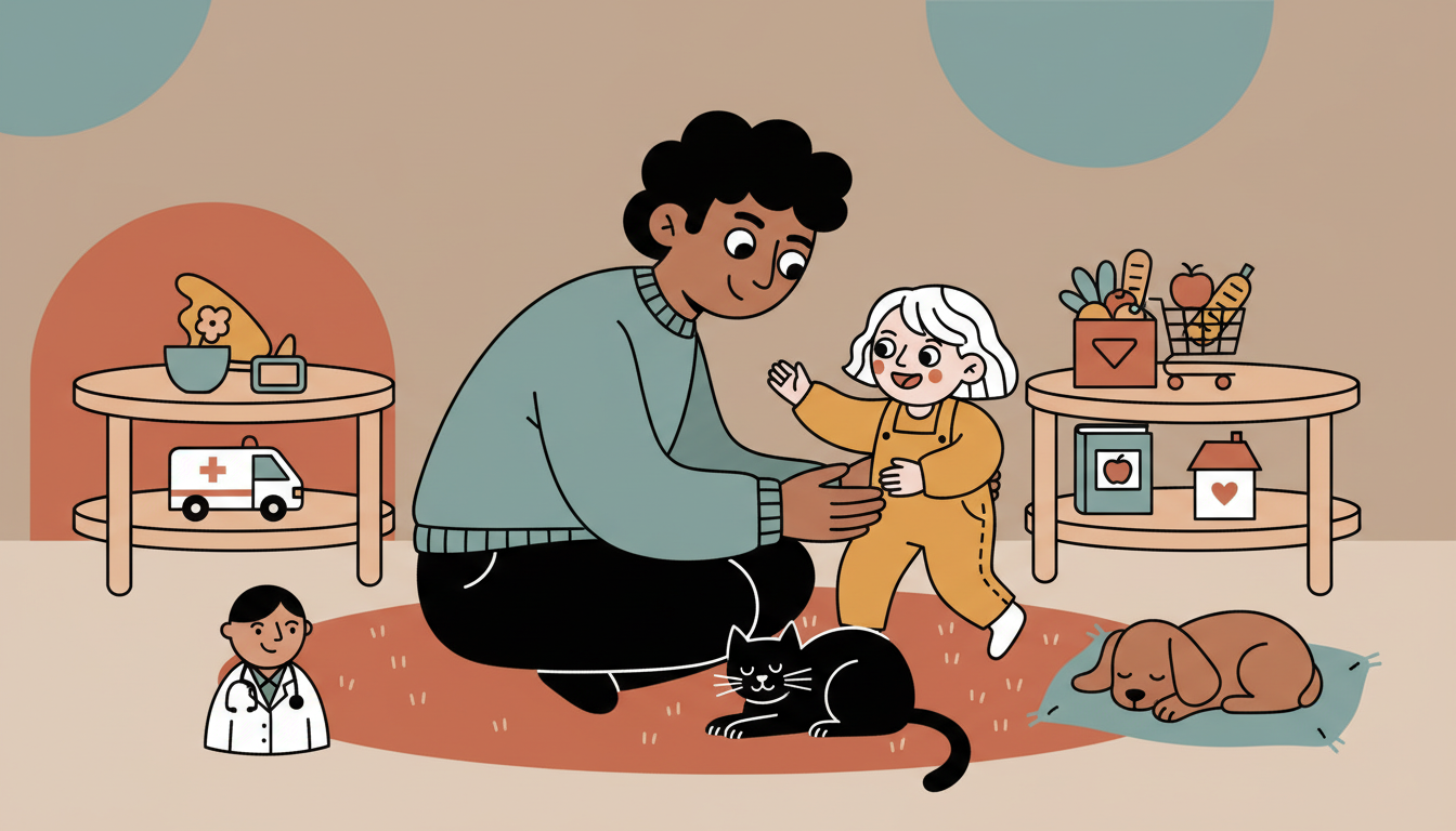 Play a game where you take turns naming people who help your family and what they do. Include family members, teachers, doctors, store workers, and community helpers. For each person, talk about how their help makes life better. Your child can act out what these helpers do, which makes the gratitude more concrete. This activity helps your child recognize and appreciate the many people who contribute to their daily life.