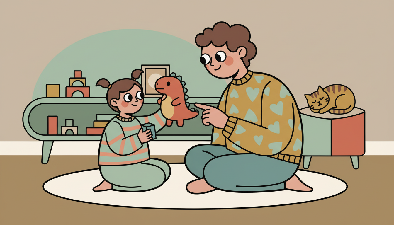 Choose a topic your child enjoys, like their toys or what they did today. Take turns talking about it. You share one thing, then they share one thing. Keep going back and forth for a few minutes, practicing the rhythm of conversation.