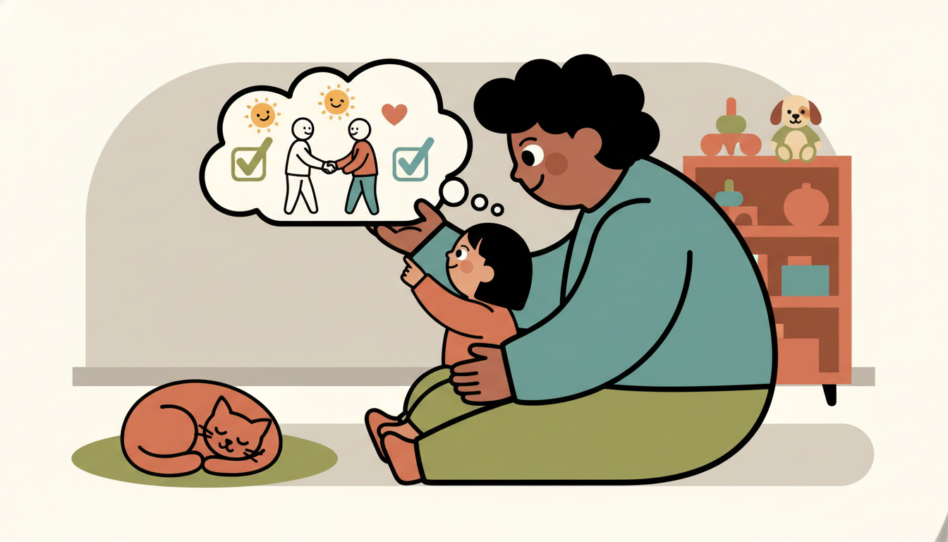 Collaborative problem-solving approaches in families predict better parent-child relationships during adolescence and young adulthood (Robin & Foster, 1989). Teaching win-win thinking builds the foundation for negotiation skills that benefit children throughout life. Children at this age can understand others' perspectives through developing theory of mind, making them cognitively ready to grasp that solutions can benefit multiple people simultaneously.