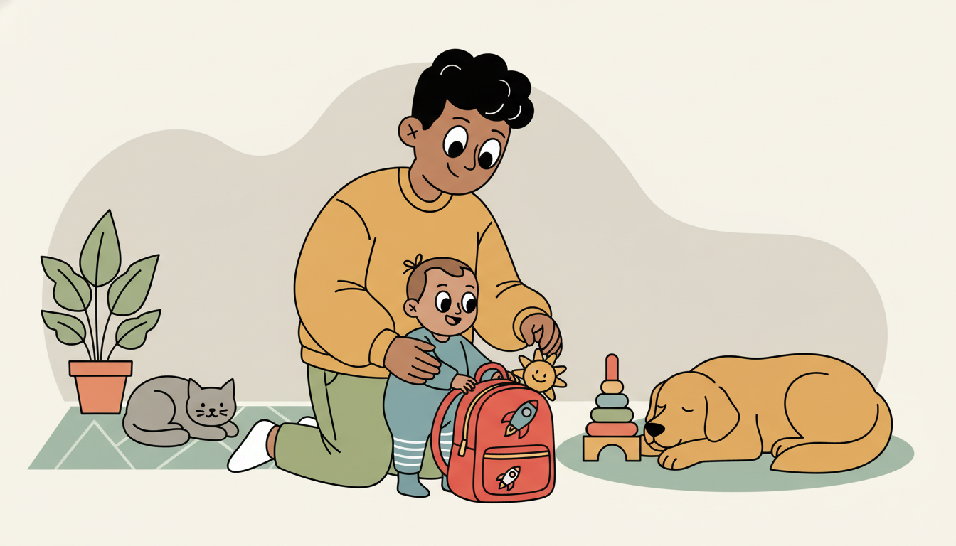 Give your child a small bag or backpack to carry their own things when you go out. Let them help put one or two items inside, like a small toy or snack cup. Your child can carry it to the car or stroller. Keep the bag light so they can manage it successfully.