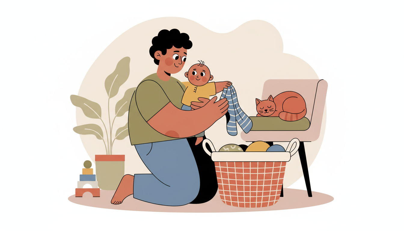 When changing your child's clothes, let them help drop the dirty clothes into a designated laundry basket. Hold them near the basket and guide their hand to release the clothing. Keep the basket in the same accessible spot. This teaches that used items go in a specific place rather than being left randomly.