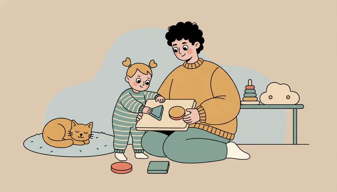 Offer your child a simple puzzle with two to four large pieces. Let them try fitting the pieces into the correct spots through trial and error. Puzzles help develop spatial reasoning and problem-solving as children figure out how pieces connect.