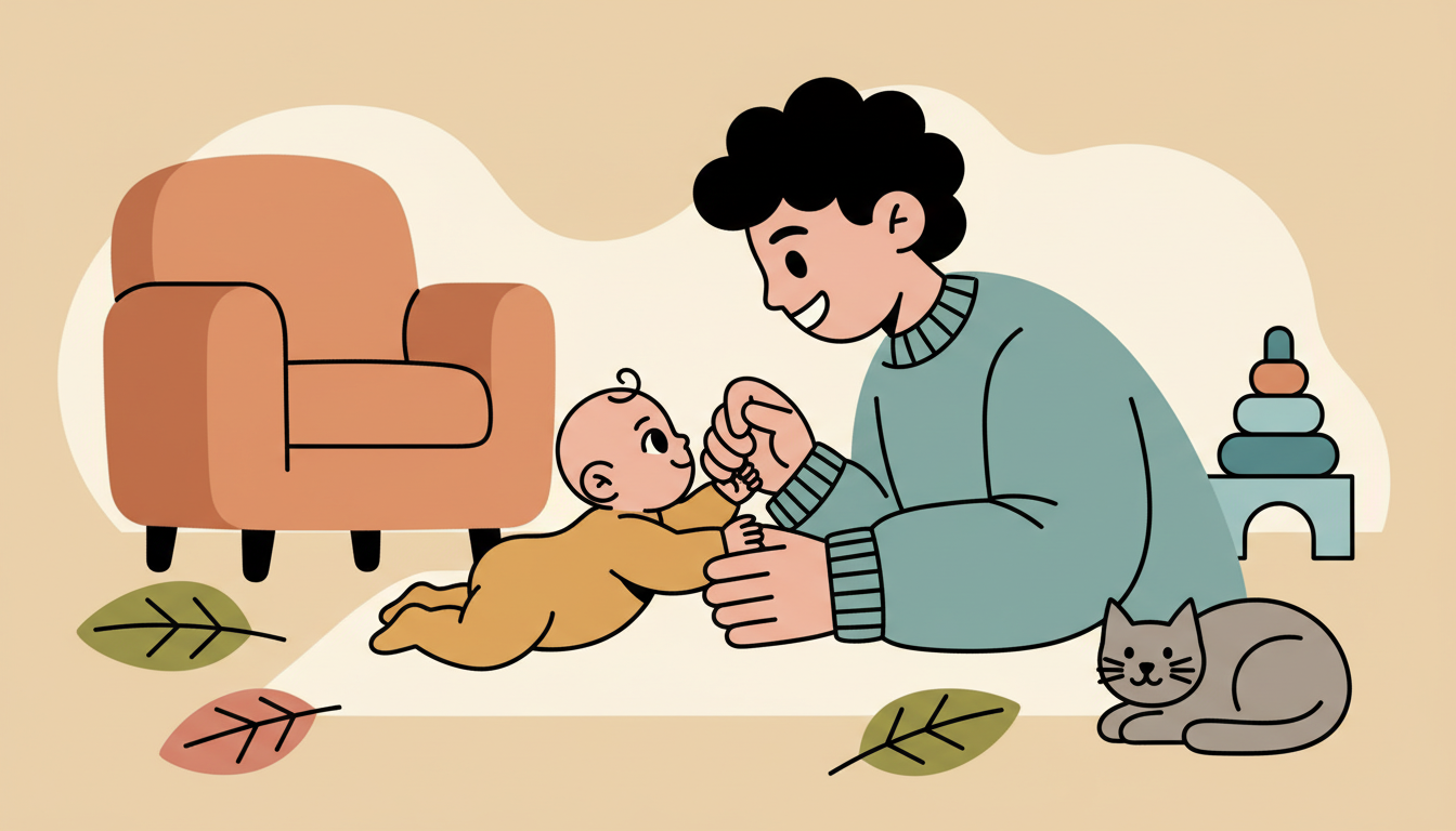 Try this when your child is fed, rested, and content. Tired or hungry babies have a harder time with social interaction.