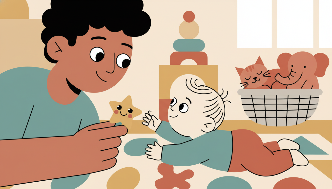 Use a rattle, musical toy, or your voice from different positions around your child. Encourage them to turn their head, track the sound, and reach toward it. This activity combines auditory tracking with motor effort, requiring persistence as they locate and move toward sounds. Change positions to create gentle challenges.