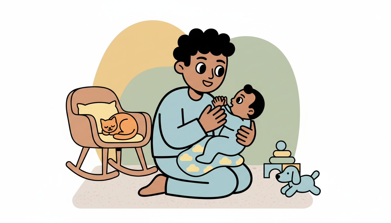 You don't need special words. Simple, warm narration of everyday moments works beautifully.